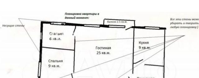Продается квартира. Официально 2 комнаты. По факту - 3. Возможна полная перепланировка, т.к. несущих стен нет.