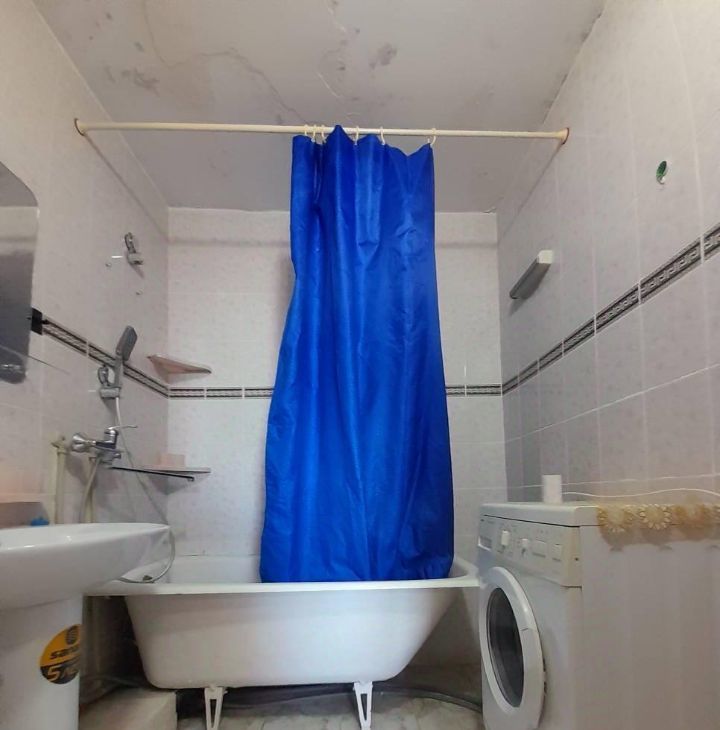 Есть все необходимое для проживания: холодильник, стиральная машина, электроплита с духовкой, микроволновка, чайник, утюг, гладильная доска, базовый набор посуды.