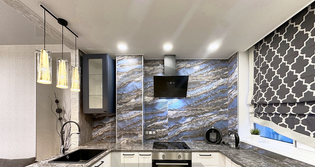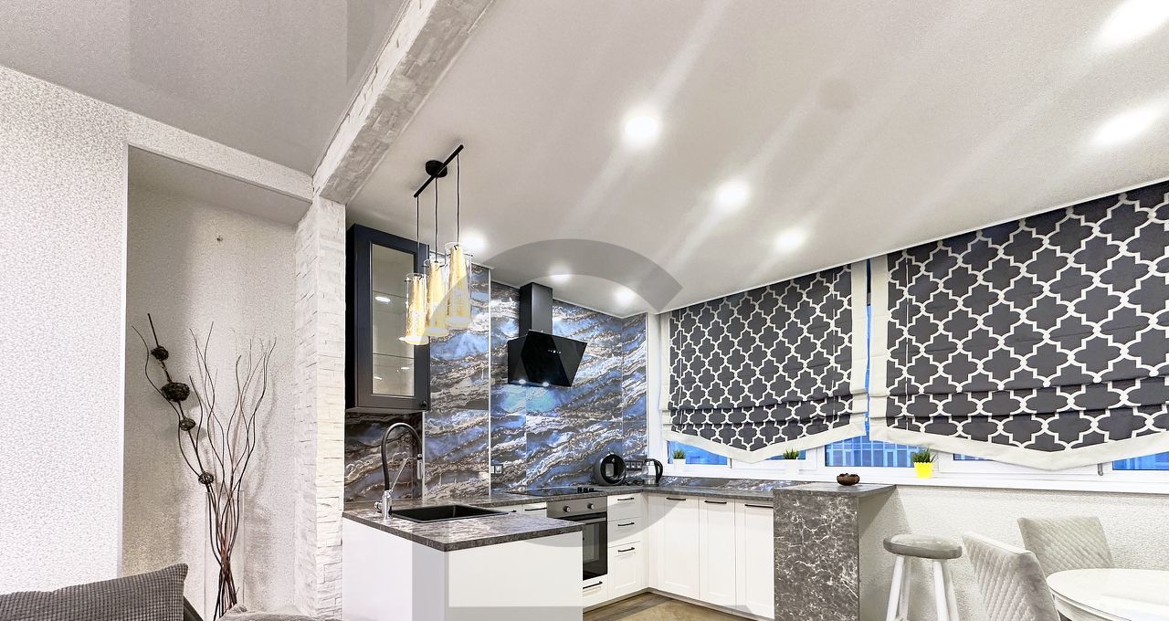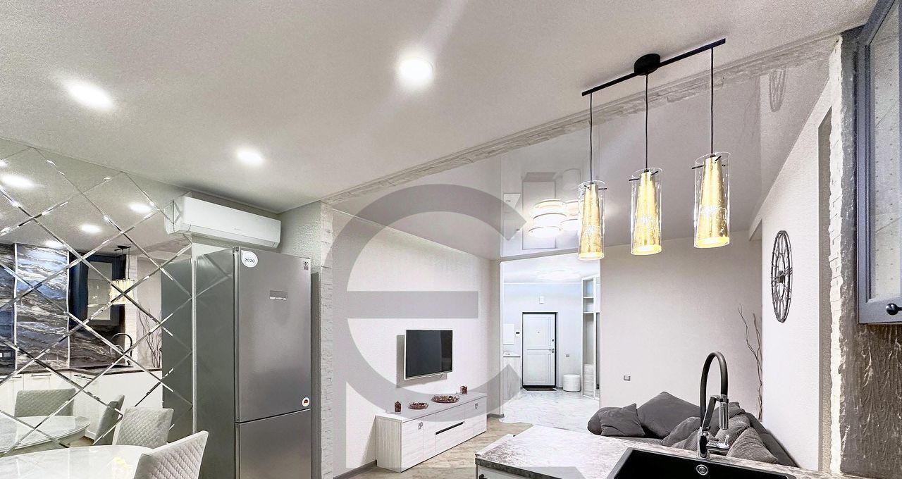 Квартира выполнена в современном стиле с использованием качественных материалов.
