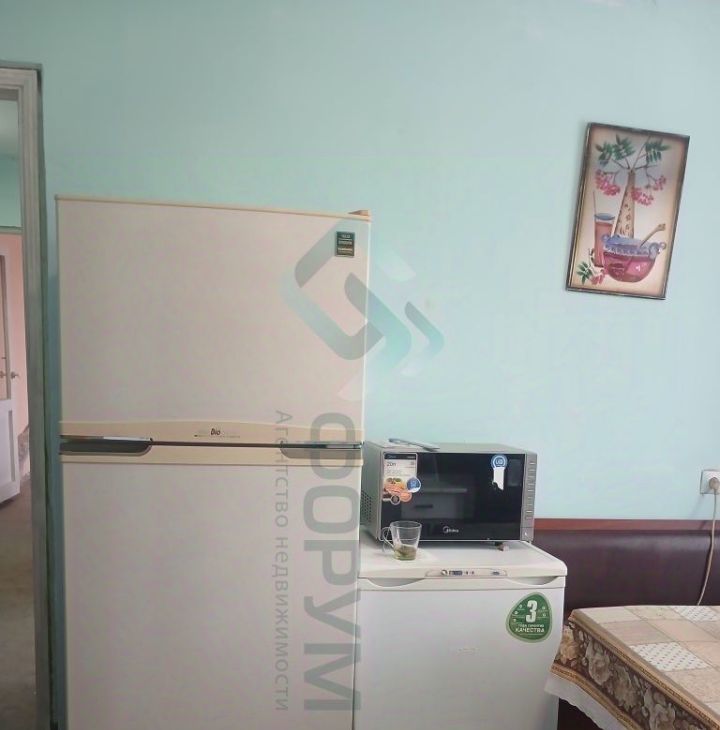 В квартире есть все необходимое для проживания: мебель - диван, кровати, шкафы, кухонный гарнитур и др.; техника - стиральная машина, холодильник, микроволновка.