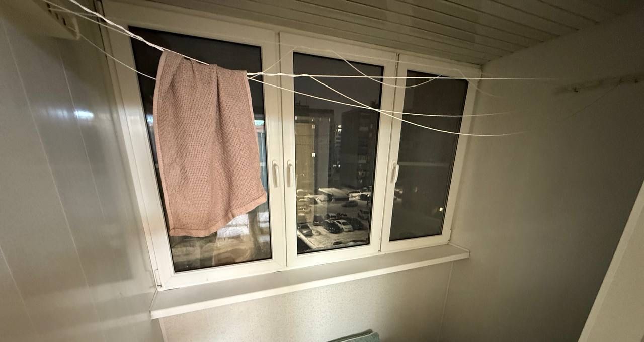 Лоджия застеклена, окна пластиковые, фурнитура рабочая.