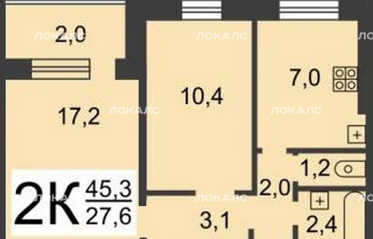 Общая площадь квартиры составляет 45 метров без учета площади лоджии.