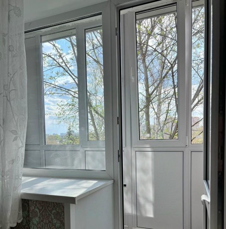 Комнаты смежные, на разные стороны, одна комната объединена с кухней, балкон застеклен, в новом пластике.