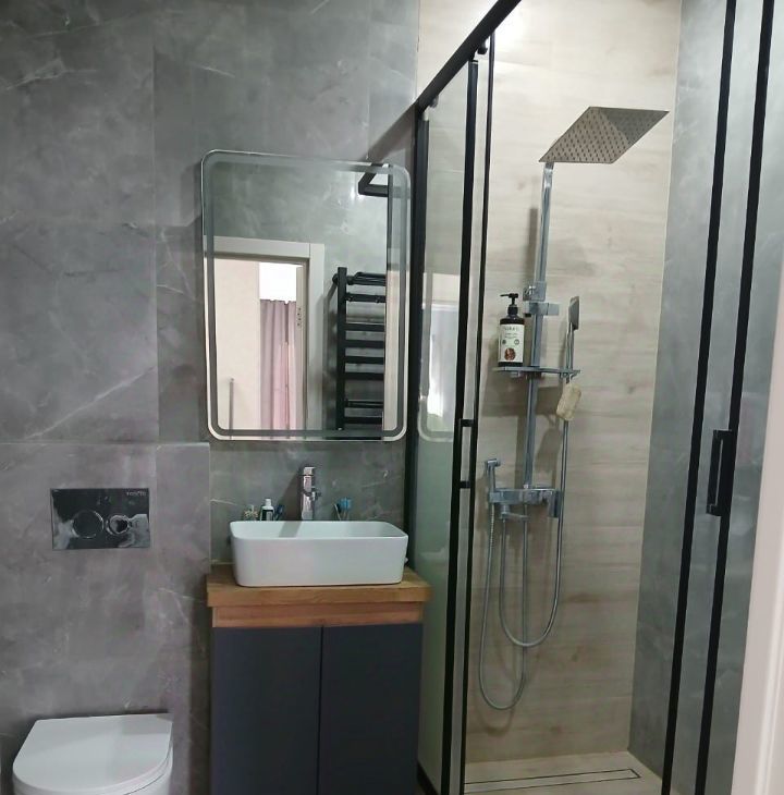 Установлены тёплые полы с отдельными датчиками на кухне-гостинной, в коридоре и сан-узле. В спальной комнате установлен бризер, в сан-узле гигиенический душ, на кухне-гостинной установлены вытяжка принудительная и отдельно вытяжка с обратным клапаном.