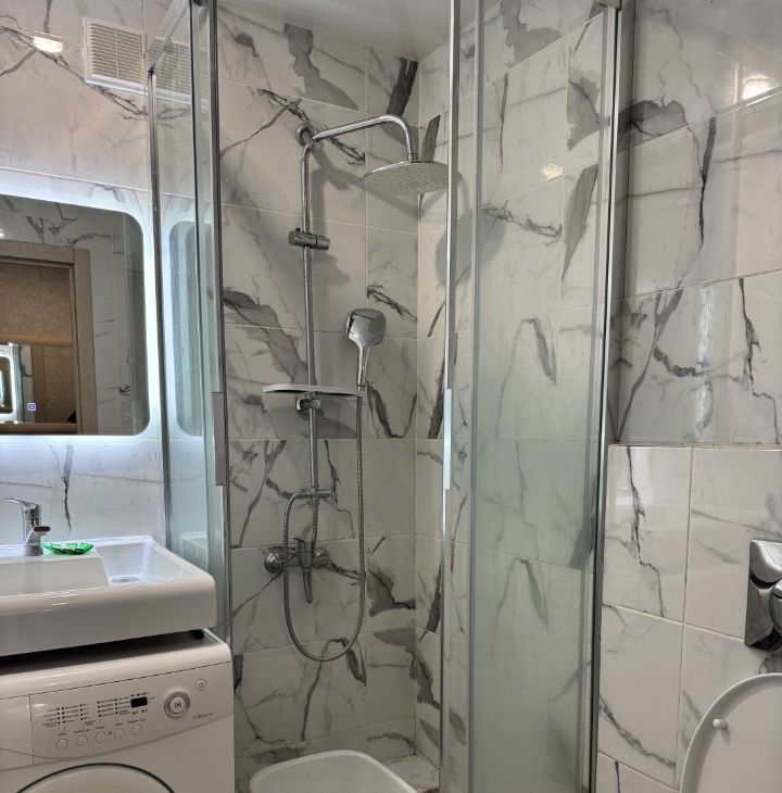 Из мебели — встроенный шкаф-купе и 2 удобных ортопедических дивана. В ванной комнате установлена современная сантехника и стиральная машина.