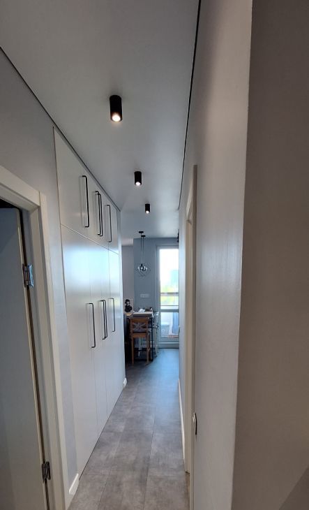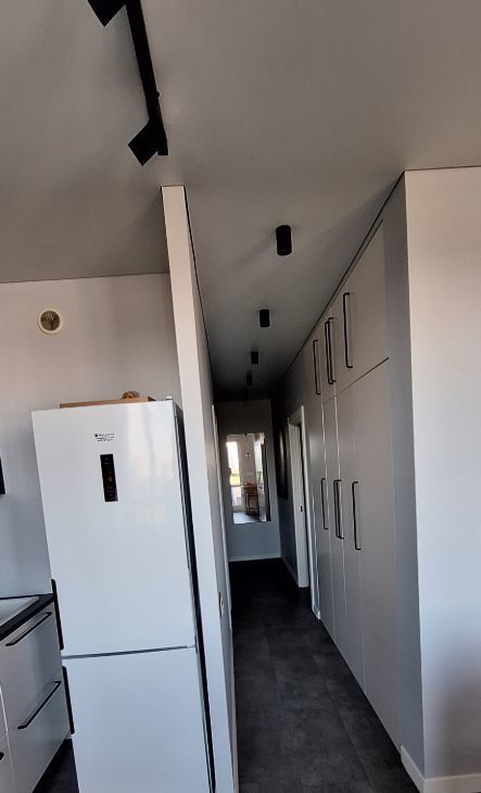 3) потолк обнимает теневой натяжной потолок из немецкого полотна, без единого шва.