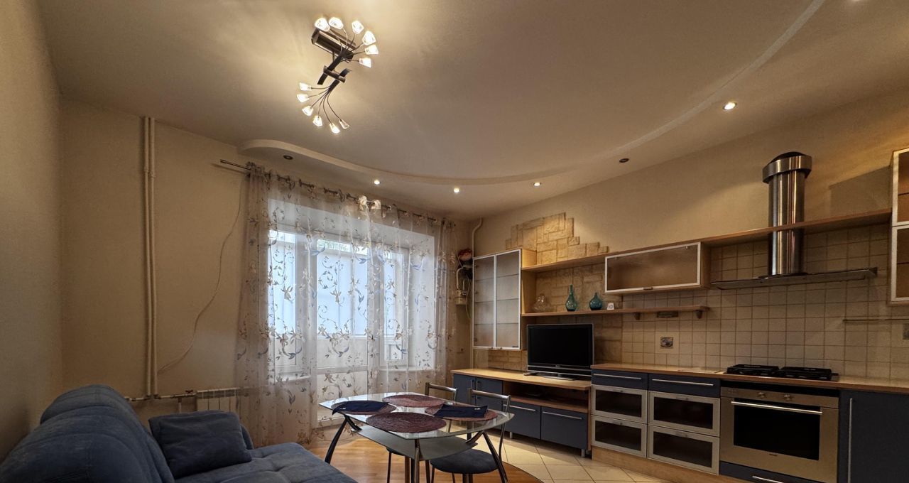 В квартире есть всё необходимое для комфортного проживания. Просторная кухня площадью 30 кв. м оснащена современной мебелью и техникой: холодильник, кондиционер, телевизор и стиральная машина. В одной из комнат также есть мебель. Совмещённый санузел оборудован ванной. Лоджия станет отличным местом для отдыха и свежего воздуха. Интернет подключен, поэтому можно легко работать или учиться из дома.