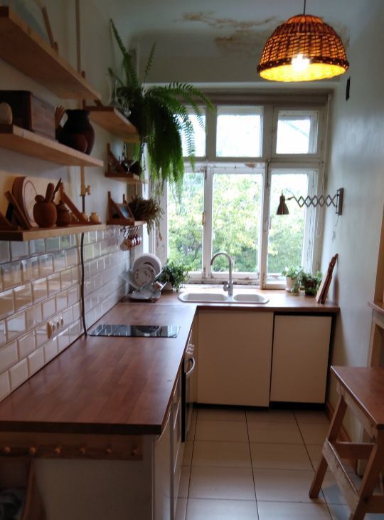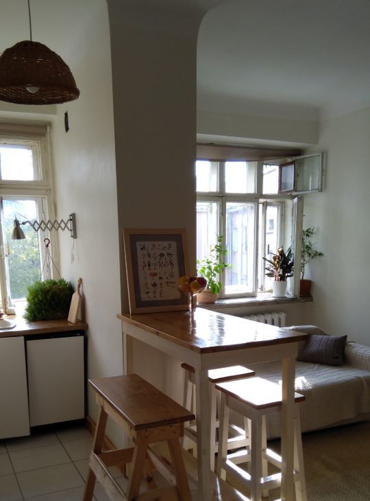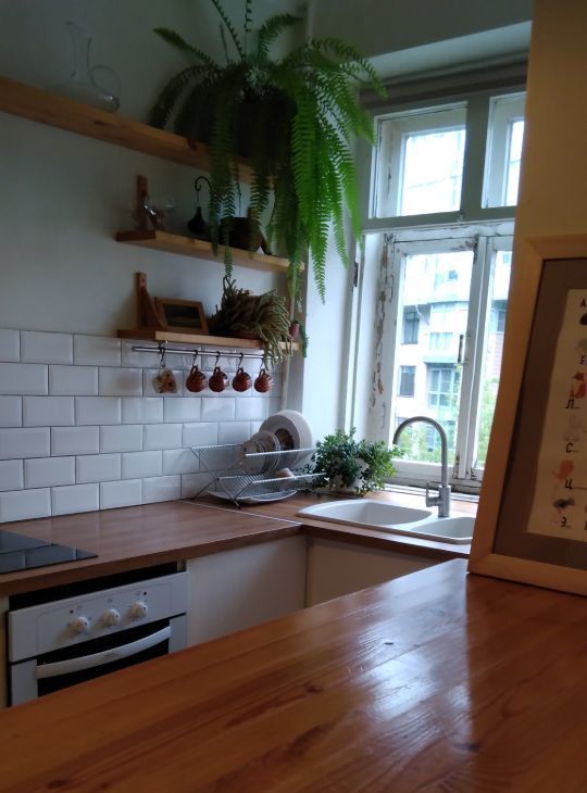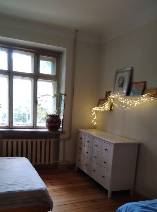 Теплый кирпичный дом, высокие потолки 3,2 метра. В квартире большие окна, много света.