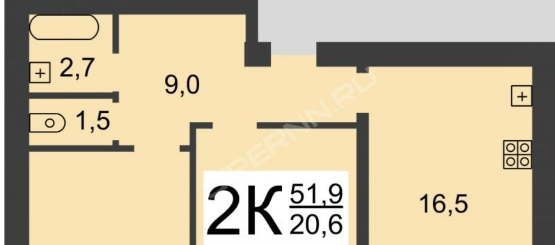 2-к кв. Нижегородская область, Нижний Новгород Ярмарочный проезд, 8 (42.0 м²)