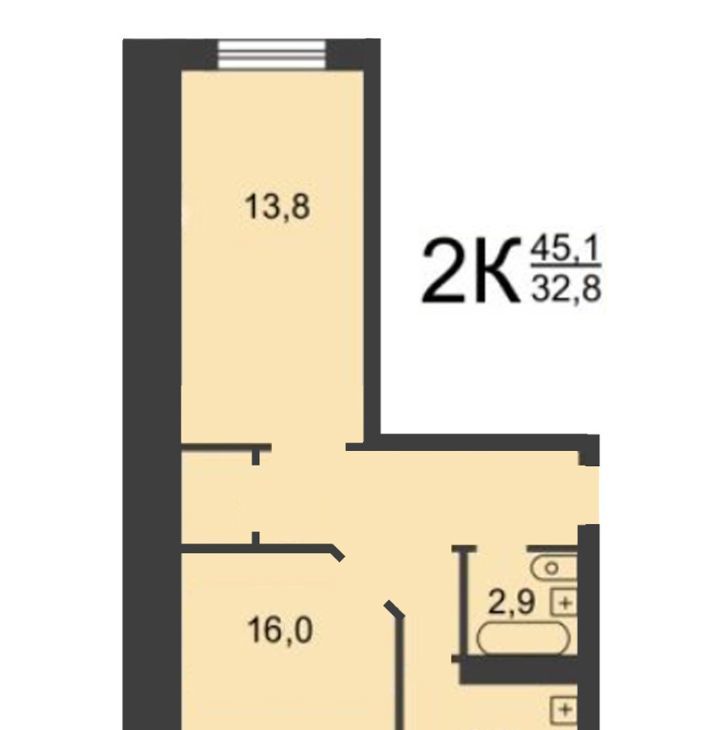 2-к кв. Нижегородская область, Нижний Новгород ул. Маршала Голованова, 11 (45.1 м²)