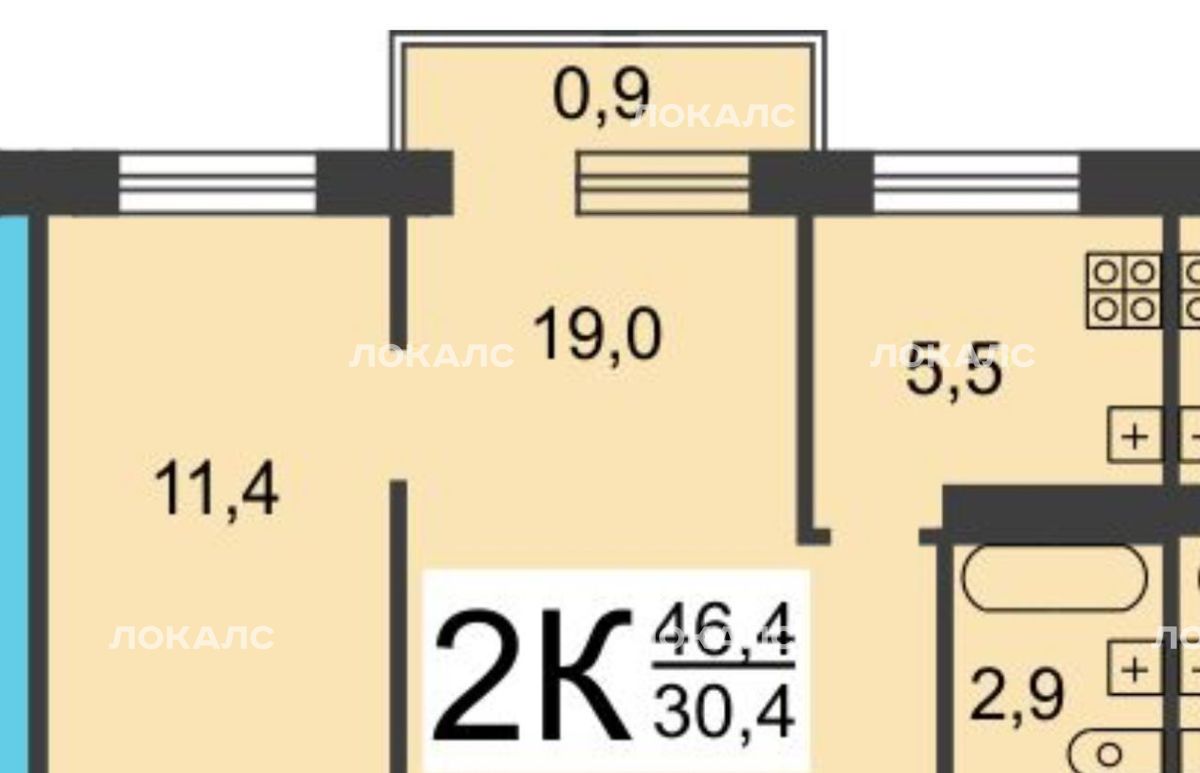 Квартира свободна от мебели, остается шкаф в коридоре, кухонный гарнитур, кондиционер.