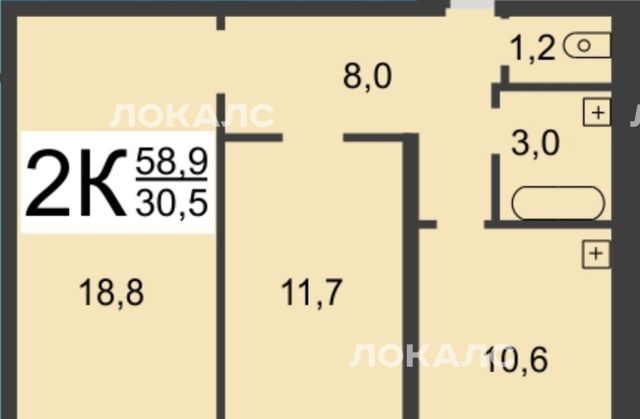 Две изолированные комнаты 18.8 кв.м. и 11.7 кв.м., раздельный санузел, огромная лоджия 5.6 кв.м., кухня 10.6 кв.м., просторная прихожая 8 кв.м.