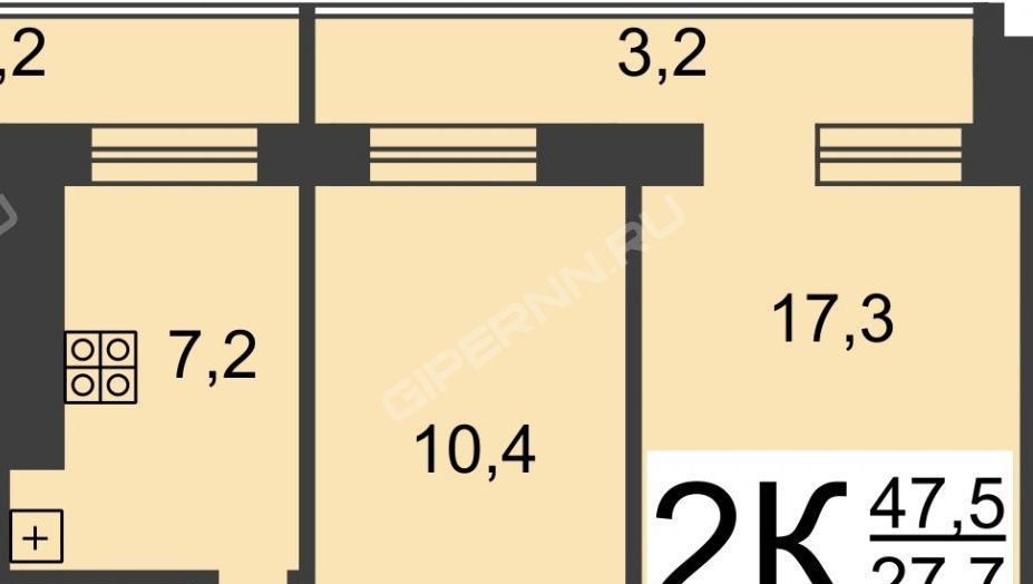2-к кв. Нижегородская область, Нижний Новгород ул. Крылова, 6А (43.1 м²)