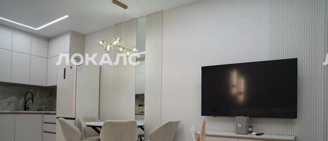 Кухня-гостиная оснащена всей необходимой кухонной техникой: электро плита, духовой шкаф, микроволновка, посудомоечная машина, холодильник, чайник, тостер, капсульная кофемашина. Так же в гостиной раскладной диван, кондиционер, ТВ со смарт-tv и умной колонкой Алиса.