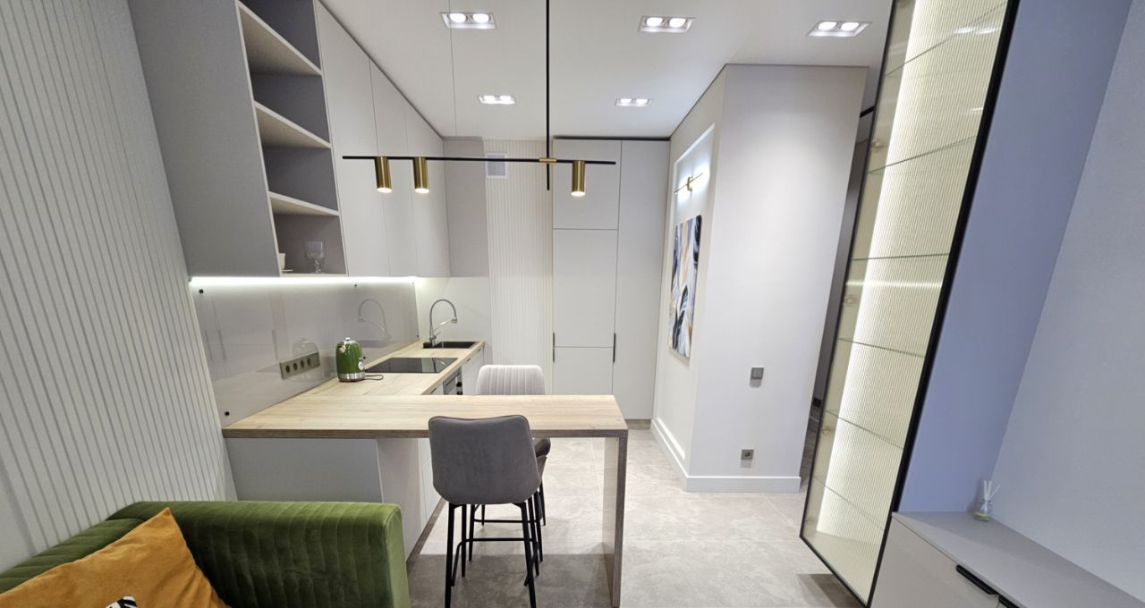 Продуманная эргономика пространства, максимальное оснащение бытовой техникой: кондиционер, бойлер, посудомоечная машина и другая техника.