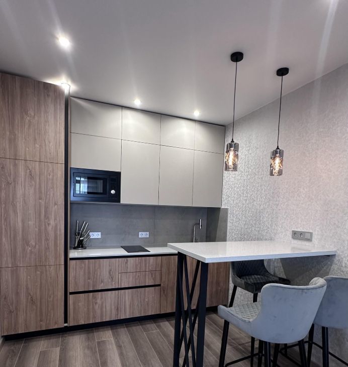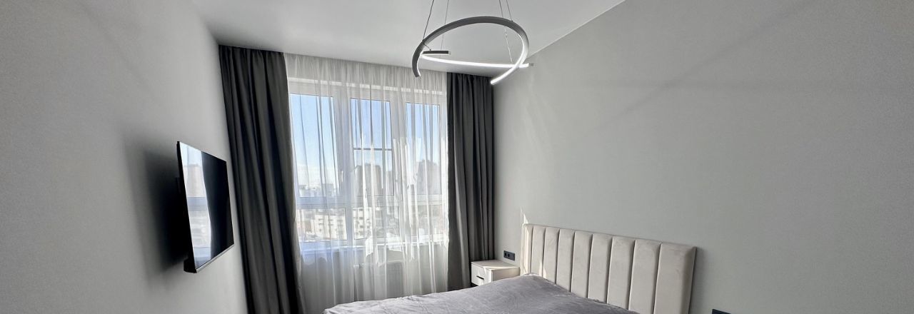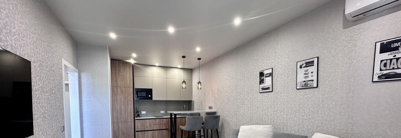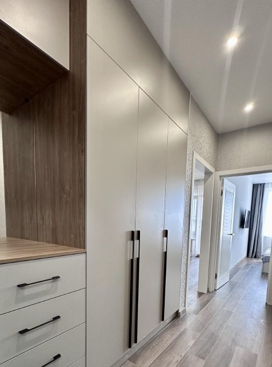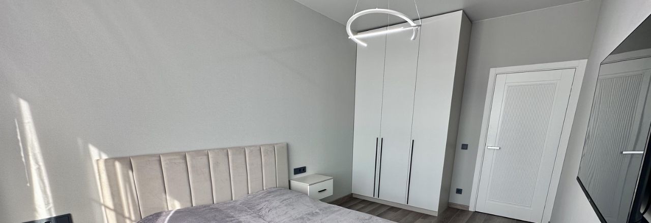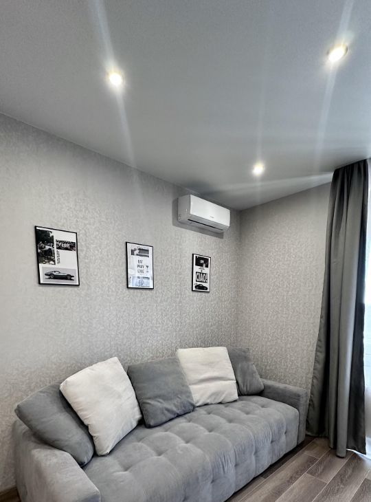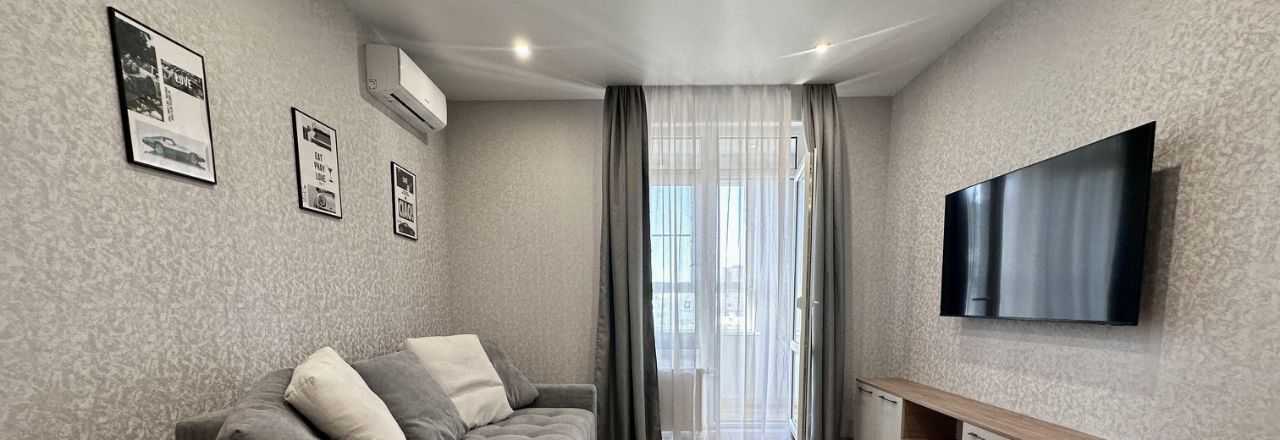 Общ. пл. 45 кв.м.. Планировка: кухня-гостиная, спальня, санузел совмещен. Квартира полностью укомплектована всей необходимой мебелью и техникой для комфортного проживания. Для хранения вещей предусмотрено два вместительных 3-створчатых шкафа. Установлены 2 кондиционера, посудомоечная машина.