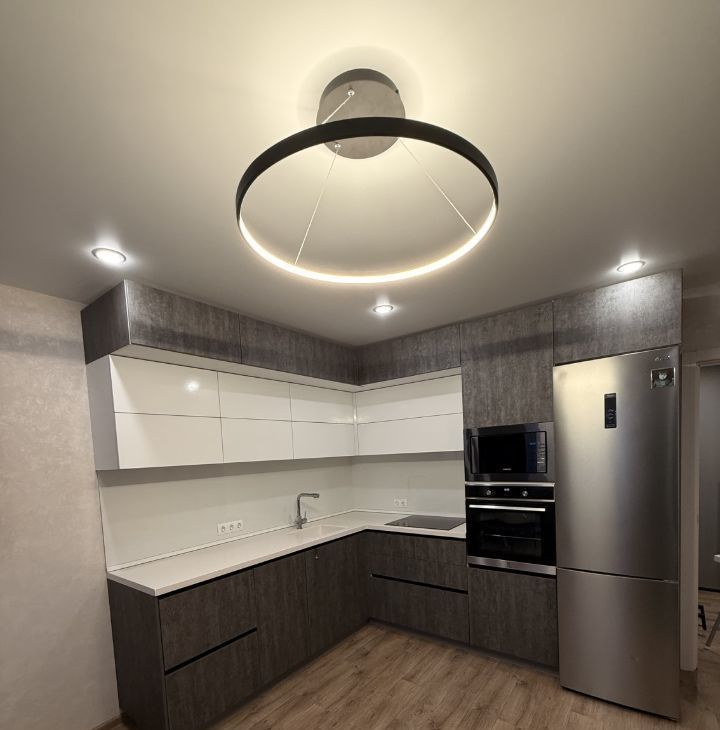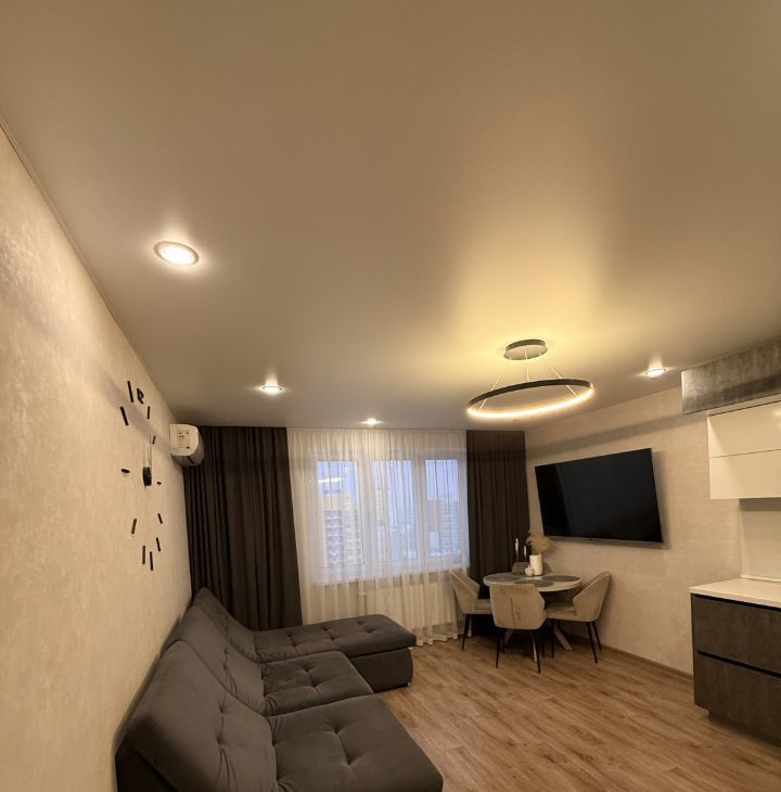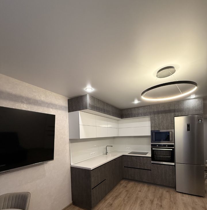 Квартира продается с кухонным гарнитуром и встроенной техникой(духовой шкаф,индукционная варочная панель,микроволновка,п/м) кондиционер,бойлер на нагрев воды,который обеспечивает нагрев воды по всей кв,корпусная мебель в прихожей.