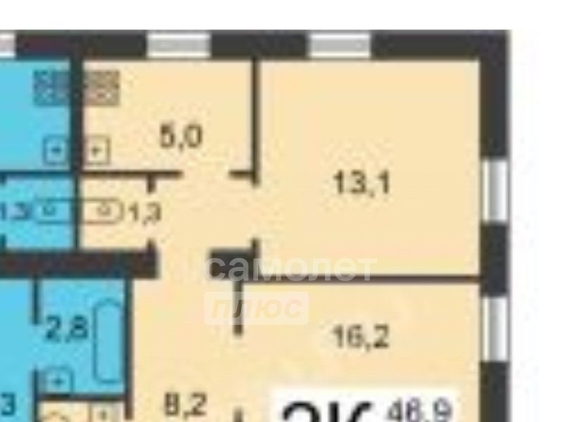 2-к кв. Нижегородская область, Нижний Новгород ул. Страж Революции, 16 (46.9 м²)