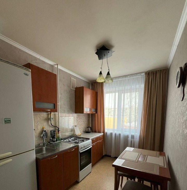 В наличии вся необходимая мебель как в комнатах, так и на кухне. Из техники есть холодильник, телевизор, утюг и стиральная машина. Окна выходят во двор, на 165й лицей.