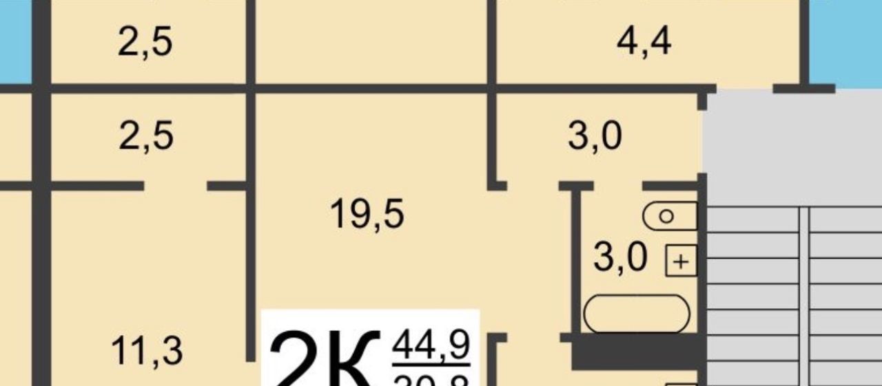 2-к кв. Нижегородская область, Нижний Новгород Космическая ул., 50 (43.0 м²)