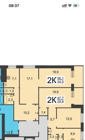 2-к кв. Нижегородская область, Нижний Новгород ул. Веденяпина, 32 (56.1 м²)