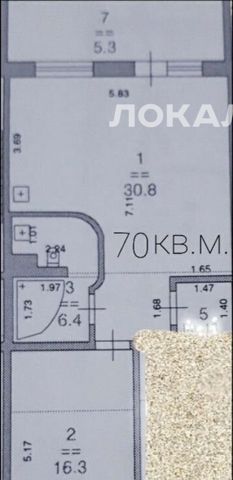 Просторная кухня-гостиная-30,8 кв.м,большая изолированная спальня -16,4 кв.