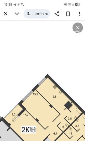 2-к кв. Нижегородская область, Нижний Новгород бул. Южный, 20 (55.4 м²)