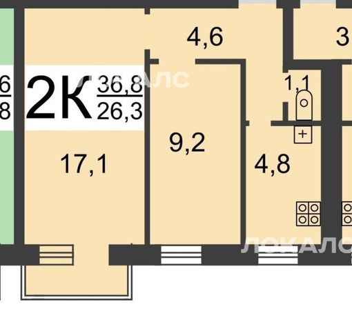 2-к кв. Нижегородская область, Нижний Новгород Юбилейная ул., 26 (44.8 м²)
