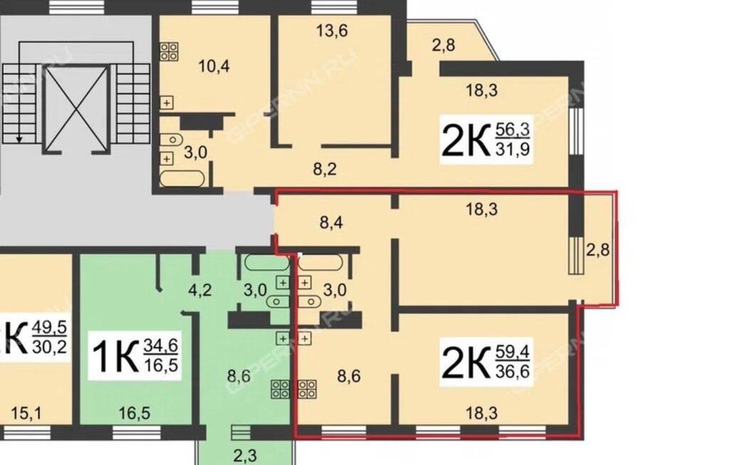 2-к кв. Нижегородская область, Нижний Новгород Корейский пер., 8 (66.3 м²)