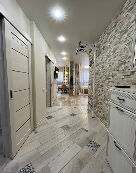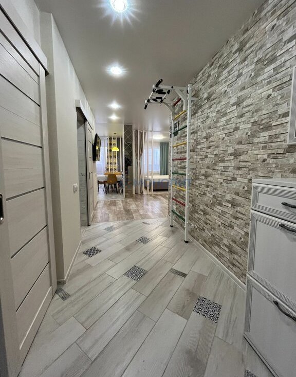 Отлично подойдет для семьи с детьми, одна комната подходит по детскую, а в коридоре стоит детская шведская стенка.