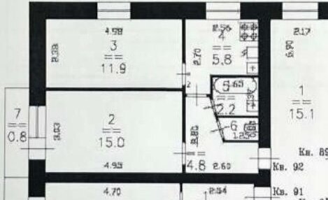 Удобная планировка, изолированные комнаты: зал 15 м2 с балконом и спальня-гостиная 11,9 м2. Кухня 5,8 м2, санузел раздельный.