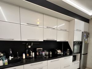 Остается встроенная кухня с плитой. На кухне теплый пол.