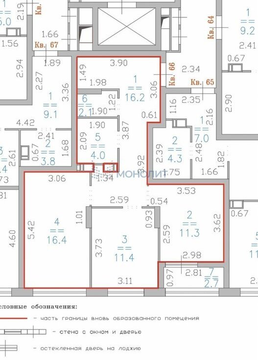 2-к кв. Нижегородская область, Нижний Новгород ул. Героя Советского Союза Аристархова, 4 (64.1 м²)