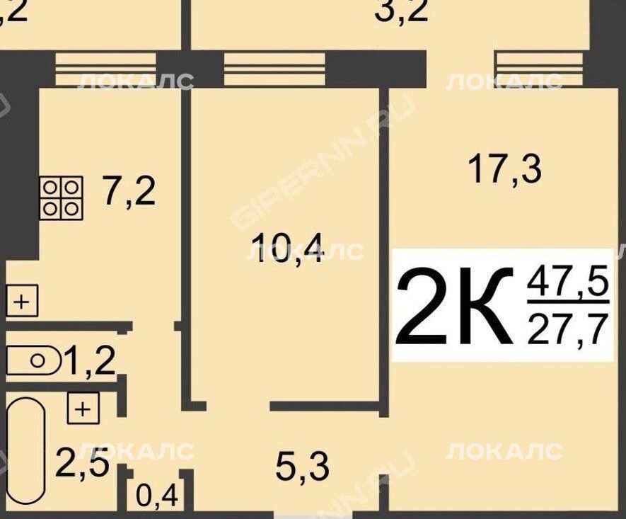 2-к кв. Нижегородская область, Нижний Новгород ул. Крылова, 6А (43.1 м²)