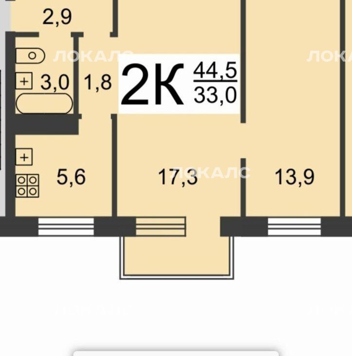 2-к кв. Нижегородская область, Нижний Новгород ул. Героя Шнитникова, 20 (43.8 м²)