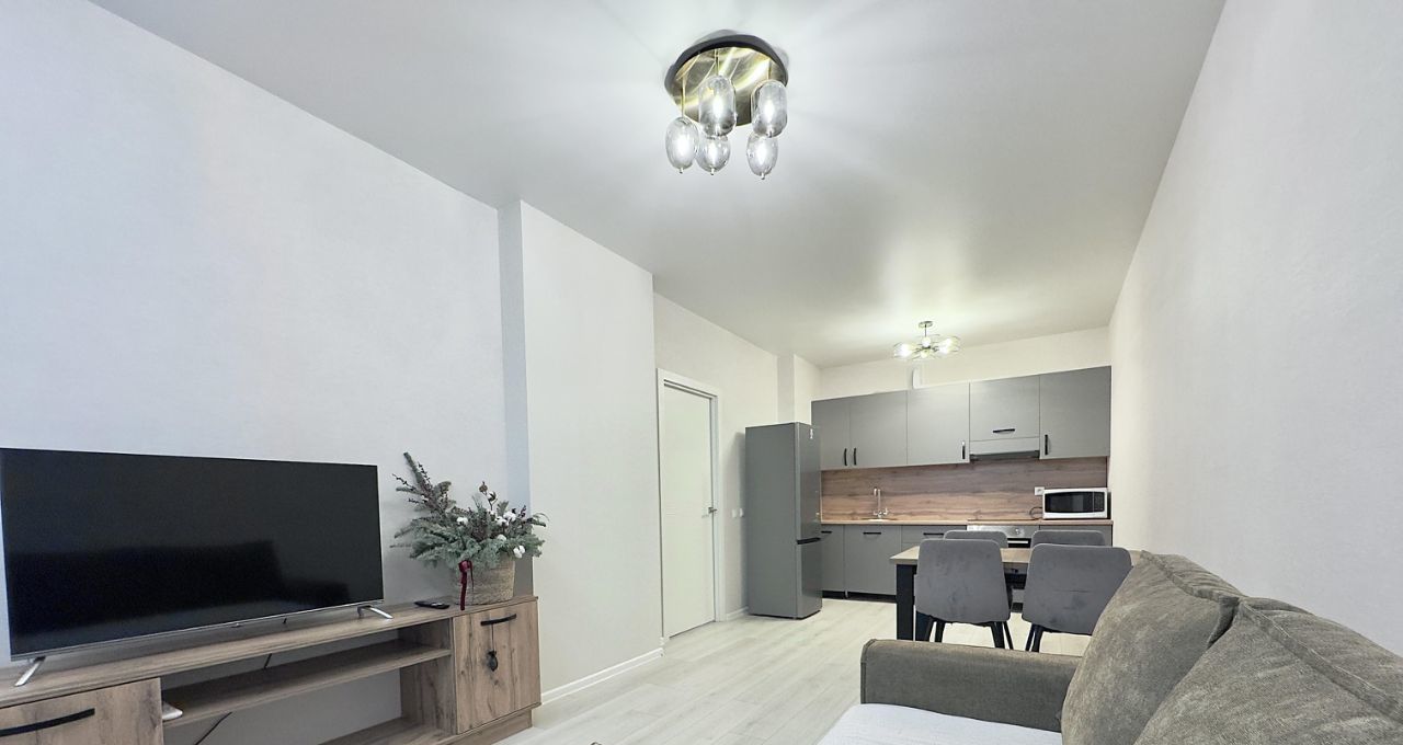 Уютная 3-х комнатная квартира с кухней-гостиной в ЖК комфорт класса. Расположена в шаговой доступности от центра города, 10 минут пешком до метро.