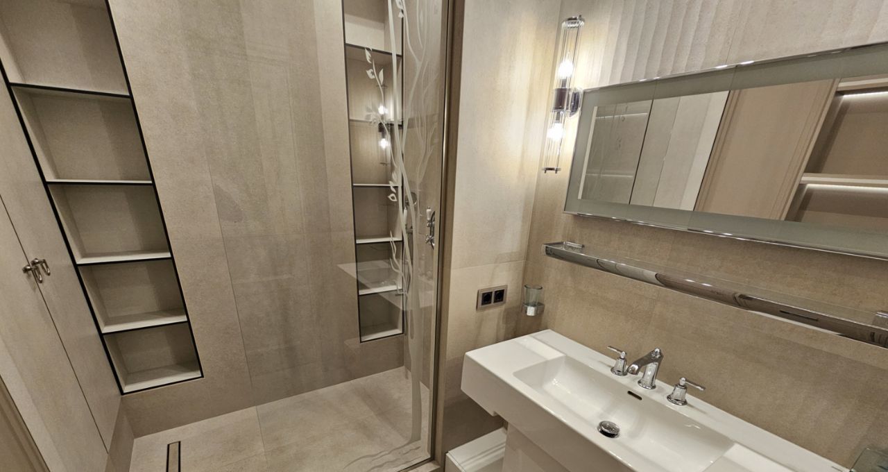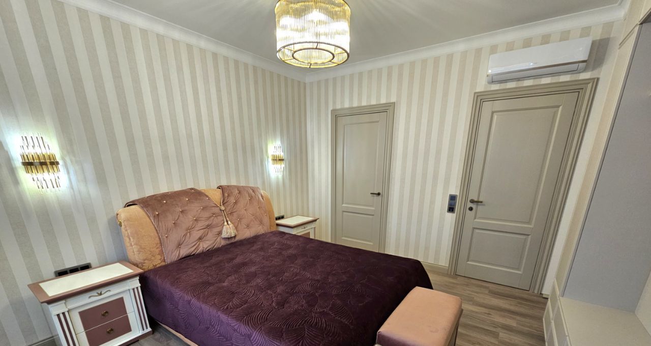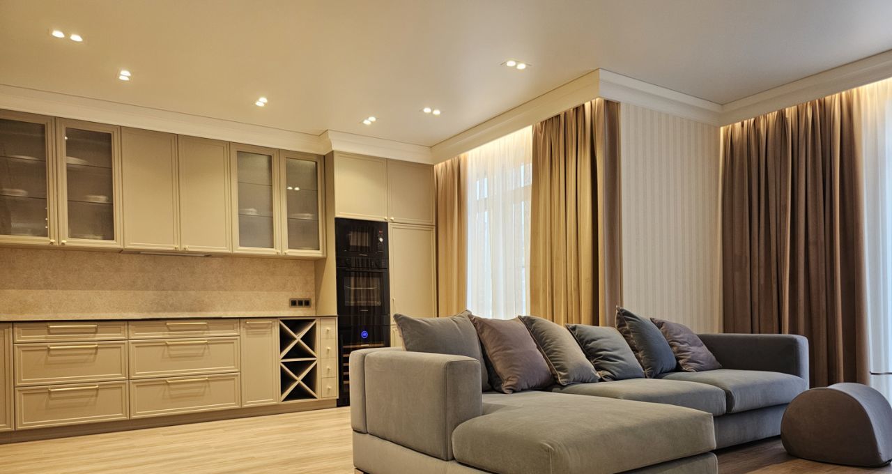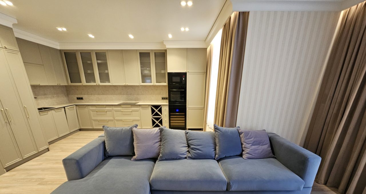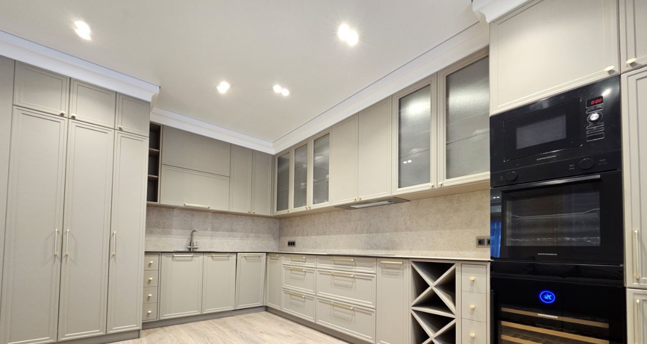 Ремонт выполнен дорогими импортными материалами по индивидуальному дизайн-проекту. Встроенная мебель выполнена на заказ. Максимальное оснащение бытовой техникой: кондиционеры в каждой комнате, посудомоечная машина, бойлер и другая техника.