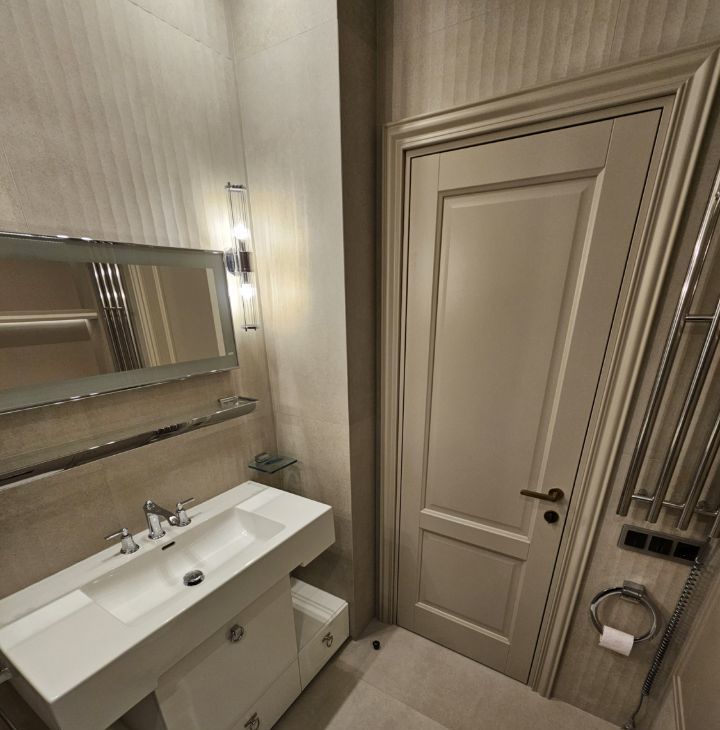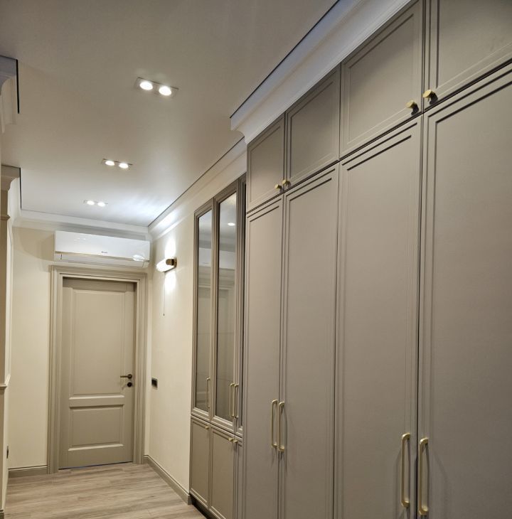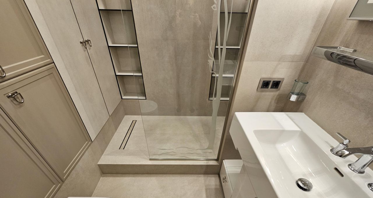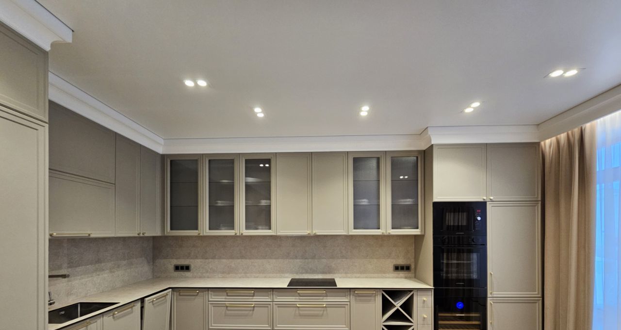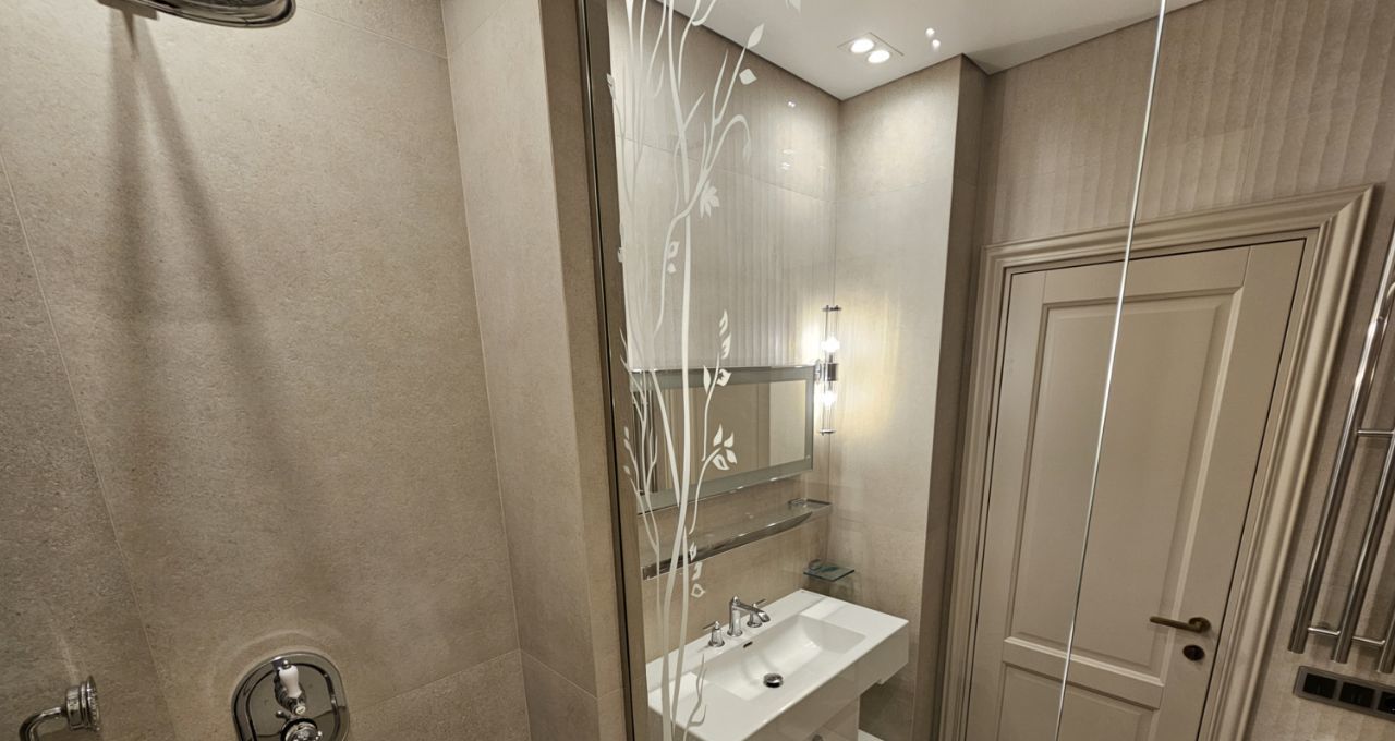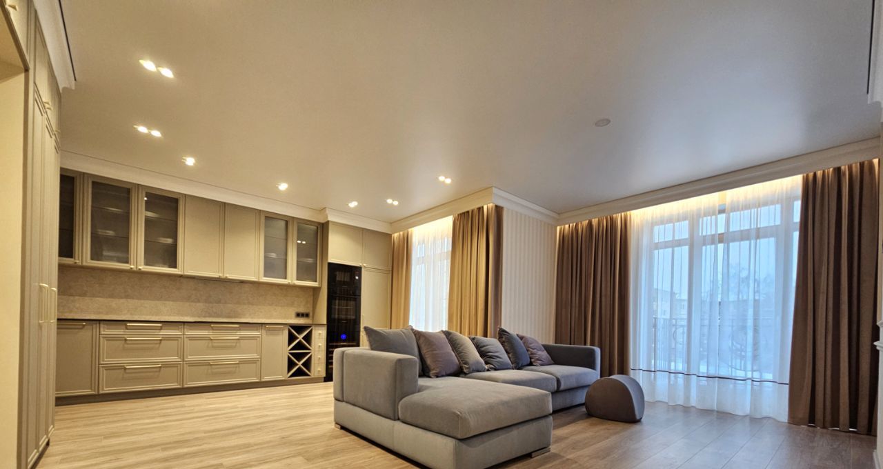 Ремонт выполнен дорогими импортными материалами по индивидуальному дизайн-проекту. Встроенная мебель выполнена на заказ. Максимальное оснащение бытовой техникой: кондиционеры в каждой комнате, посудомоечная машина, бойлер и другая техника.