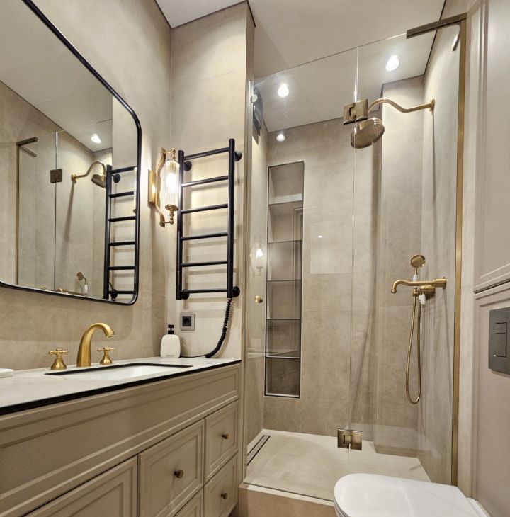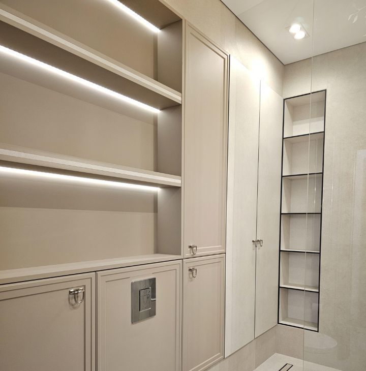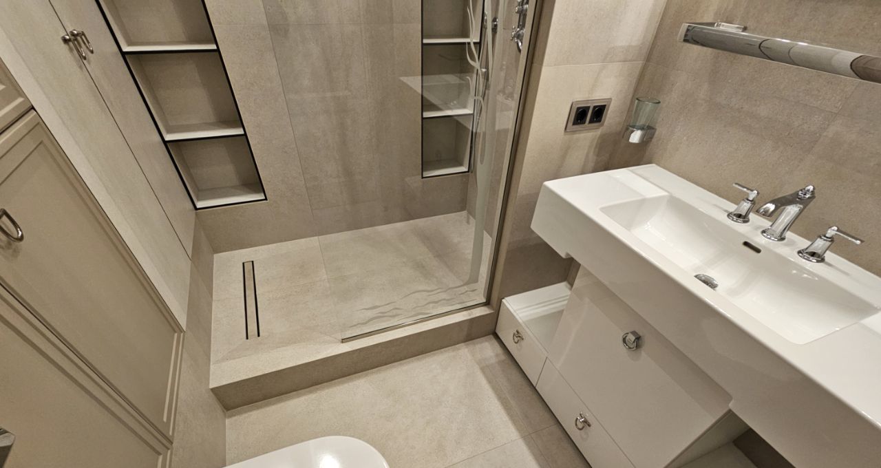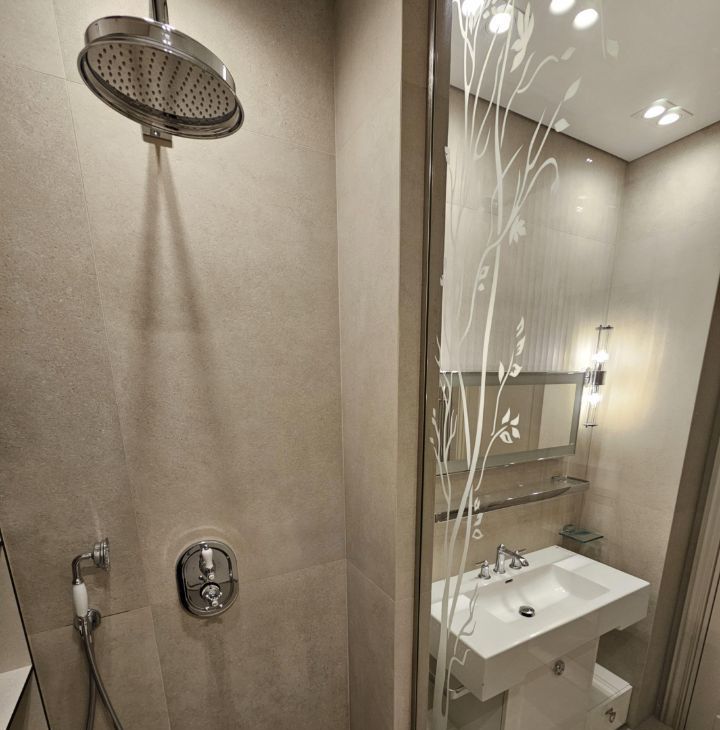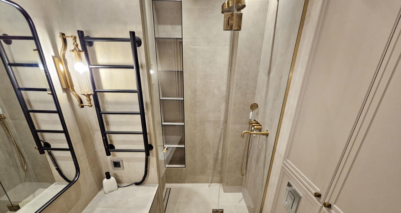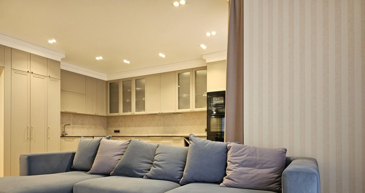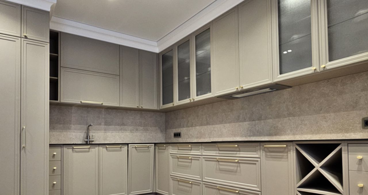 Ремонт выполнен дорогими импортными материалами по индивидуальному дизайн-проекту. Встроенная мебель выполнена на заказ. Максимальное оснащение бытовой техникой: кондиционеры в каждой комнате, посудомоечная машина, бойлер и другая техника.