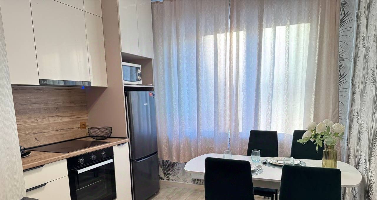 Квартира с качественным евроремонтом, оснащена всей необходимой мебелью и техникой для комфортного проживания. На кухне установлена современная мебель, есть холодильник, а в одной из комнат — телевизор. Также в квартире имеется стиральная машина. Планировка включает два отдельных санузла, один из которых оборудован ванной. Дополнительное пространство предоставляет лоджия, где можно обустроить уютное место для отдыха.
