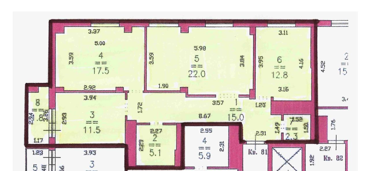 3-к кв. Нижегородская область, Нижний Новгород Краснозвездная ул., 5 (88.0 м²)