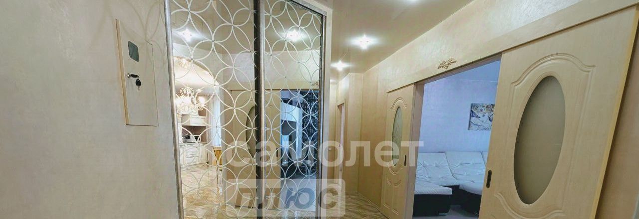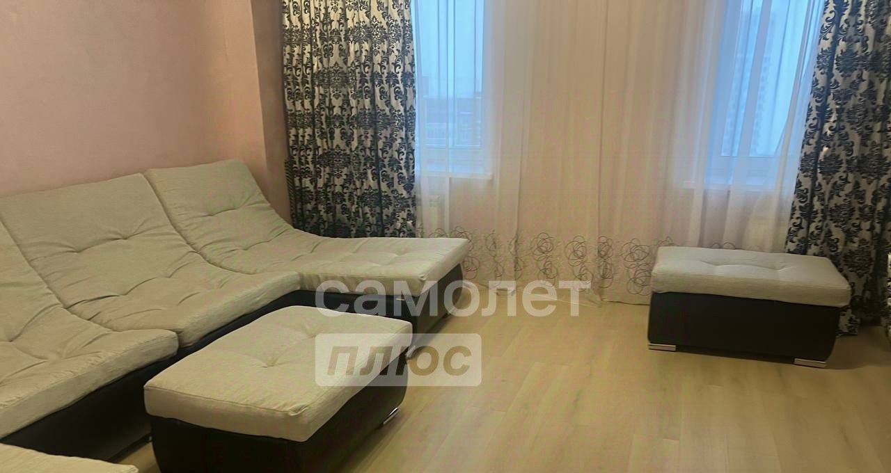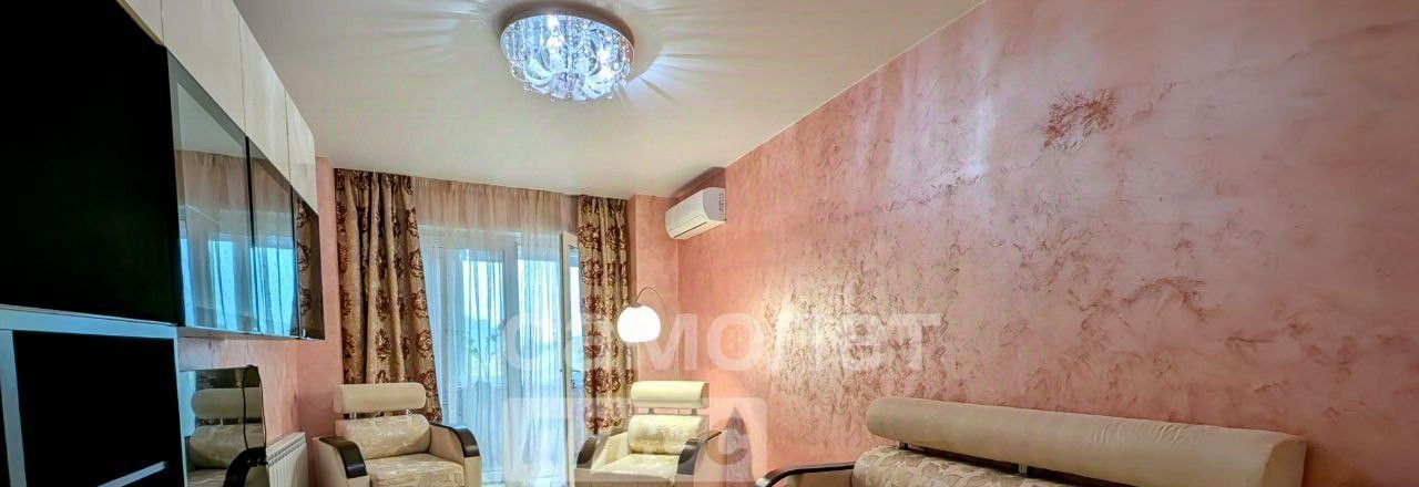 В комнатах двуспальная кровать и раскладывающийся диван. Телевизор, стиральная машина, бойлер (на время отключения горячей воды), кондиционер. Большая гардеробная. Утеплённая лоджия с видом на ТЦ "Небо".