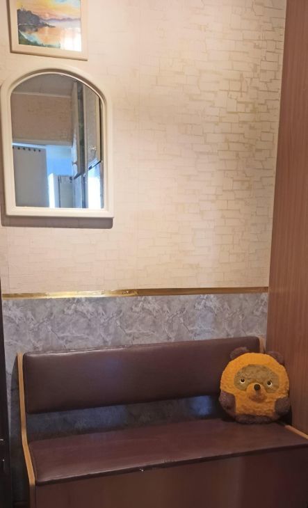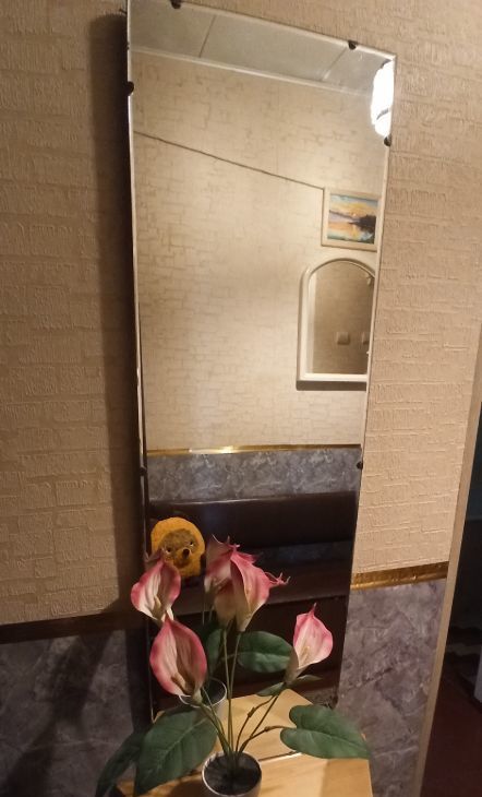 В прихожей большое и маленькое зеркало, диван-лавка, домофон трубка и через приложение.