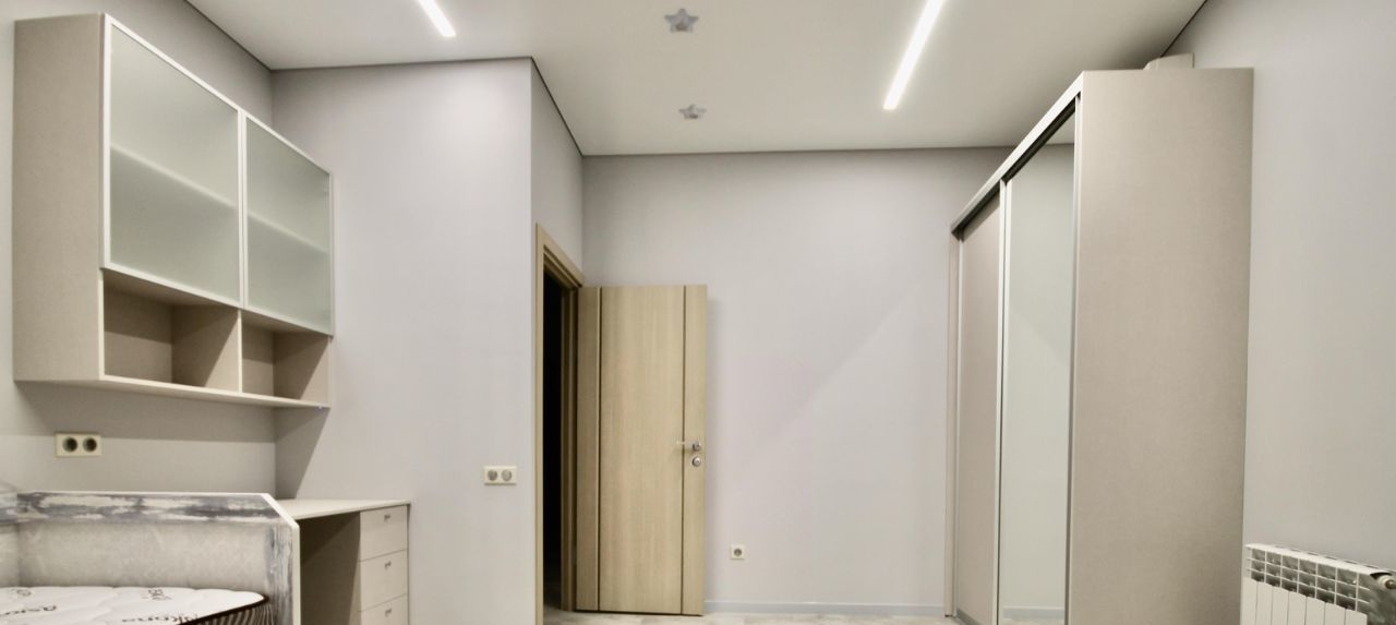 Общая площадь квартиры - 80 кв.м. Планировка: кухня-гостиная, спальня и детская. В квартире дизайнерский ремонт. Полностью укомплектована мебелью (удобные диваны и кресла, мягкая мебель, шкафы-купе, встроенная кухня) и бытовой техникой (телевизор, посудомоечная машина, холодильник, стиральная машина, другая бытовая техника). Установлены кондиционеры и бойлер. Имеется гардеробная комната.
