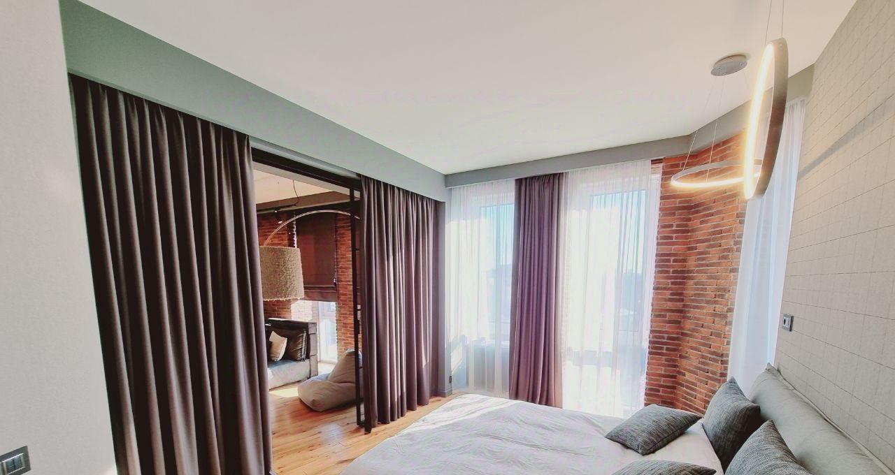 Огромное пространство располагает к комфорту и расслаблению. Большая площадь остекления - красивый панорамный вид. Мастер-спальня со своей гврдеробной комнатой и санузлом.