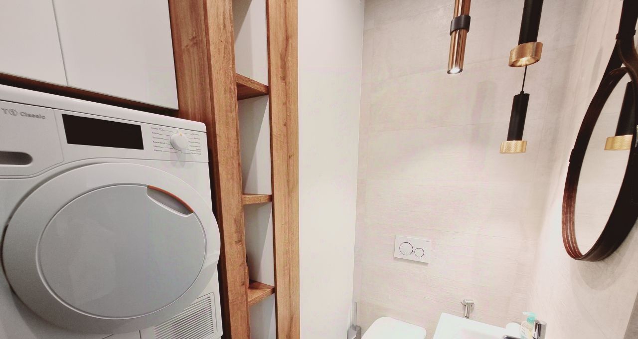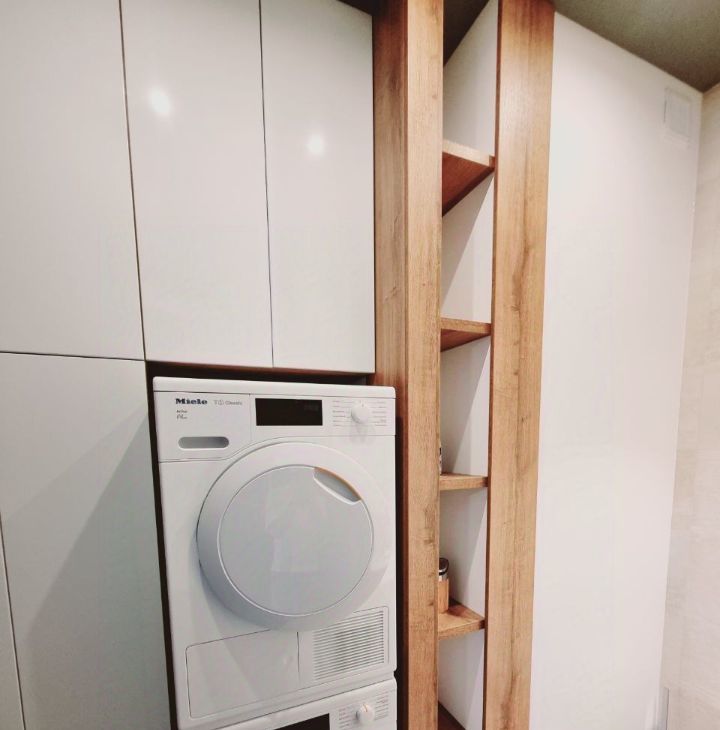 Кабинет с большим окном. Второй санузел, где есть и стиральная и сушильная машины.