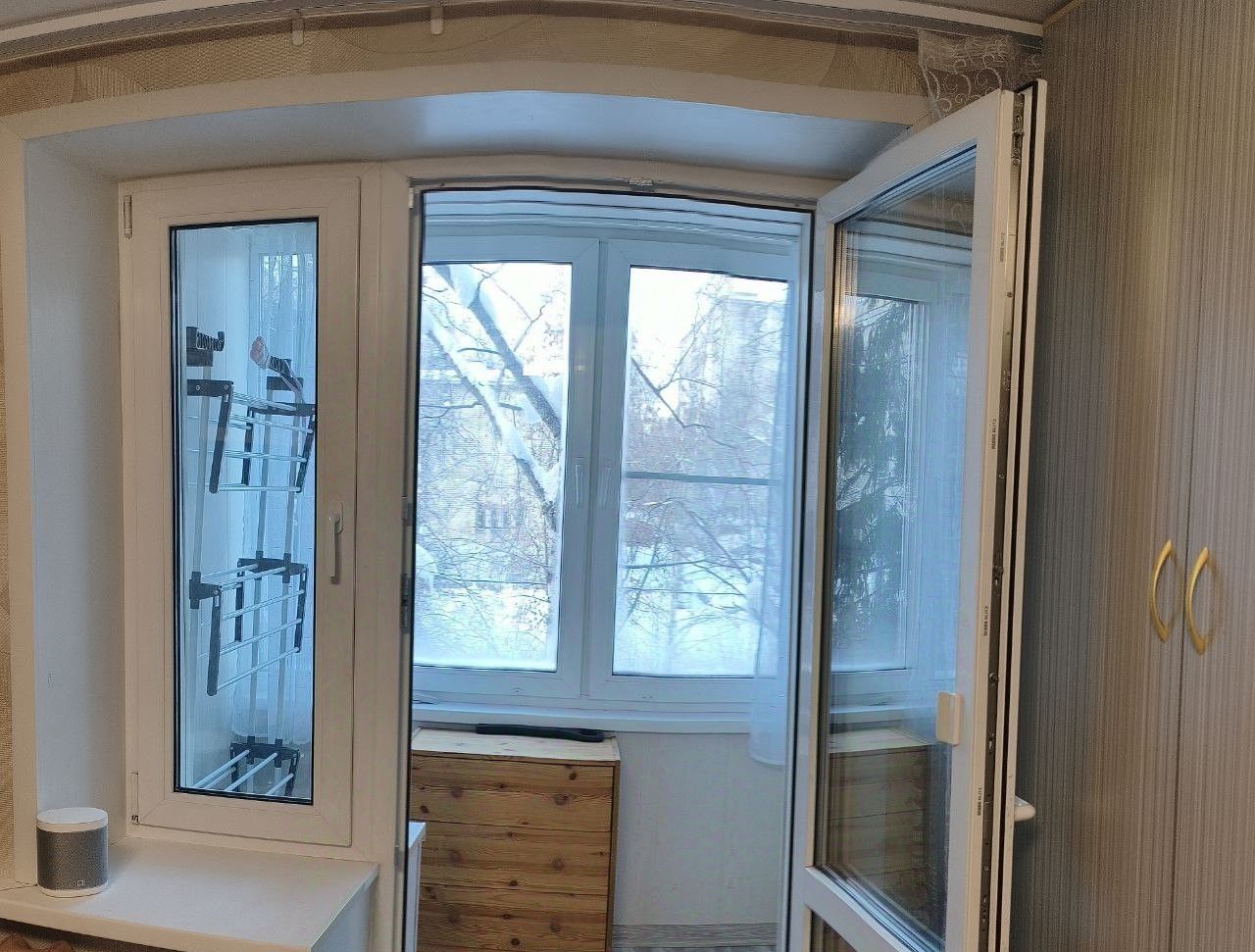 Из окон квартиры прекрасный вид во двор, много зелени, детская площадка, соседние дома находятся далеко.