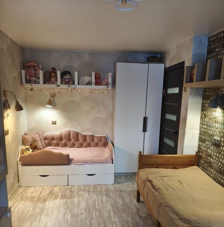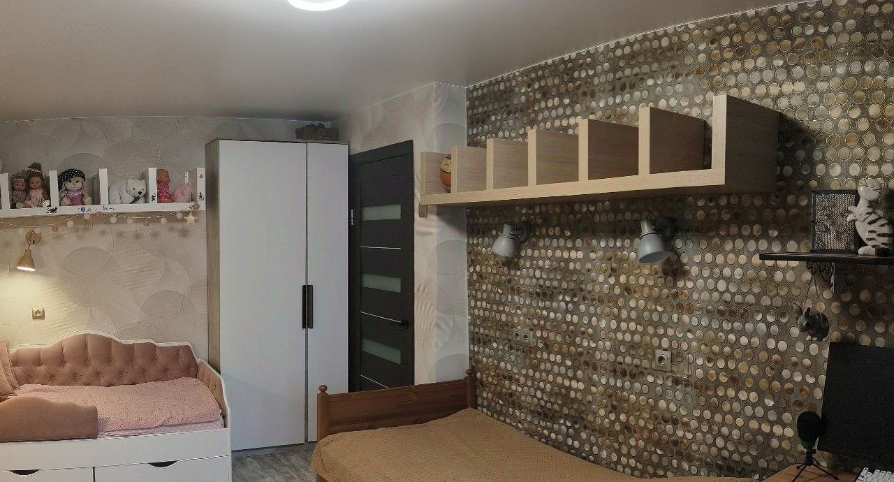 Площадь 67,1 кв.м + 2 лоджии. Планировка на две стороны дома. Кухня-гостиная и детская с лоджией окна во двор, спальня с лоджией окна на ул. Ошарскую. Для тишины и чистоты в спальне установлены кондиционер и бризер. С/у совмещенный. В квартире сделана перепланировка, узаконена в 2023 году.