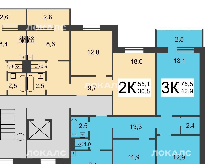2 больших балкона