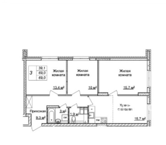 3-к кв. Нижегородская область, Нижний Новгород просп. Героев Донбасса, 12 (68.6 м²)